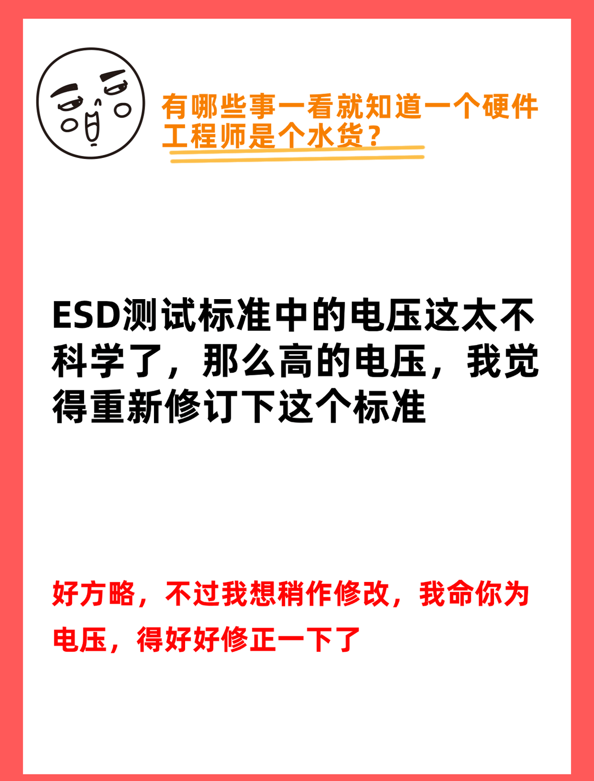 看到一个硬件工程师抱团取暖的问题了啊~
