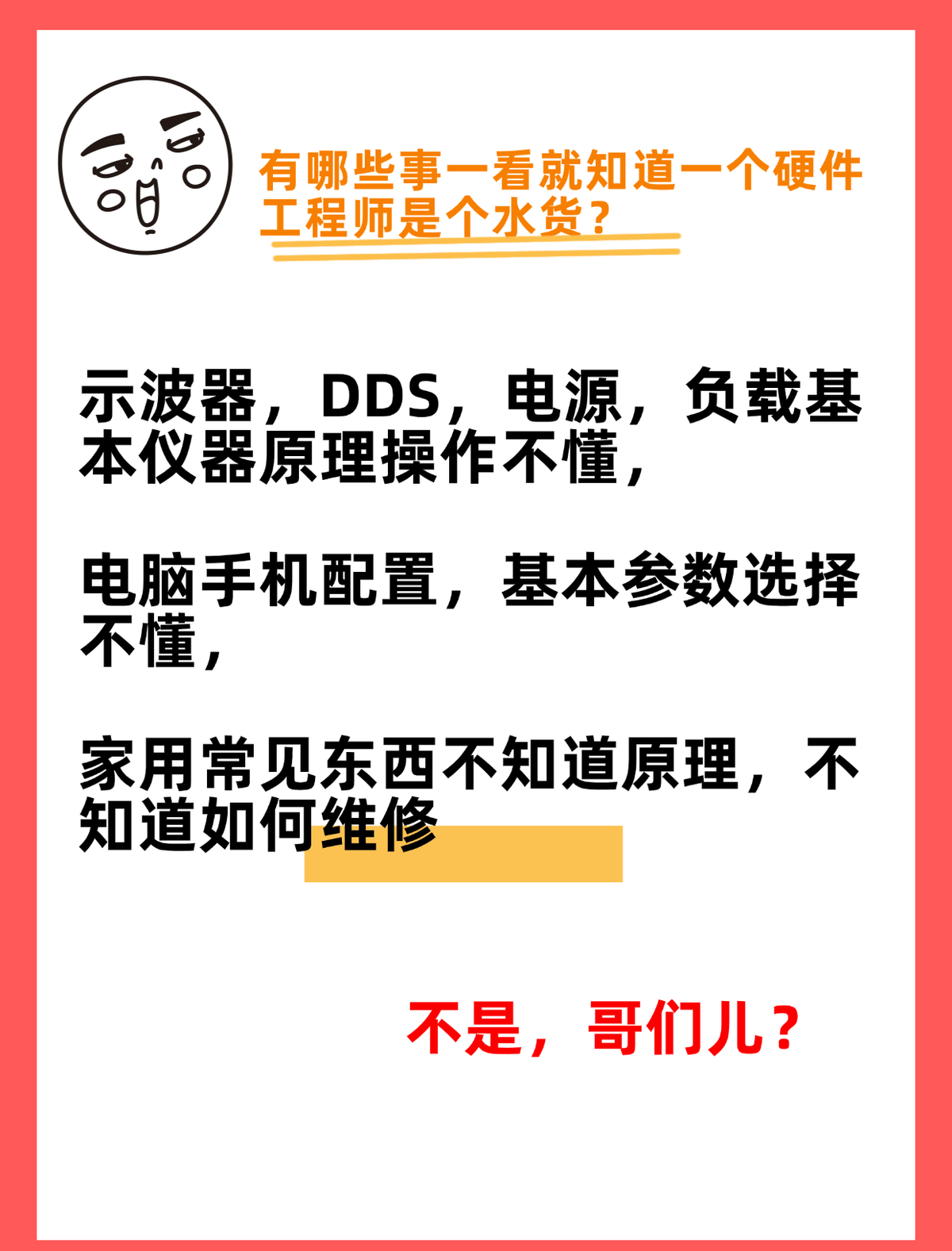 有哪些事一看就知道一个硬件工程师是个水货?
