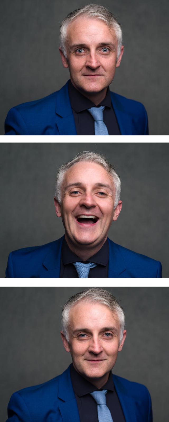 我们通过与他沟通,让他可以完全放松自我地大笑。再后来,我们就拍到了他自信心和亲和力都高的照片。