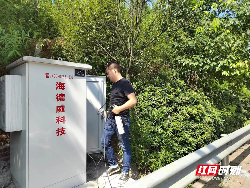 欧阳超在湖南郴州境内超限超载现场、调试、测试、数据检查。(资料图)