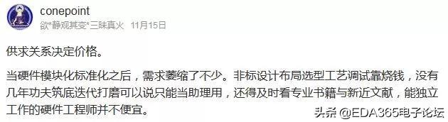 水木社区几位工程师最近对“硬件工程师的技术现状”表达了一些自己的观点。