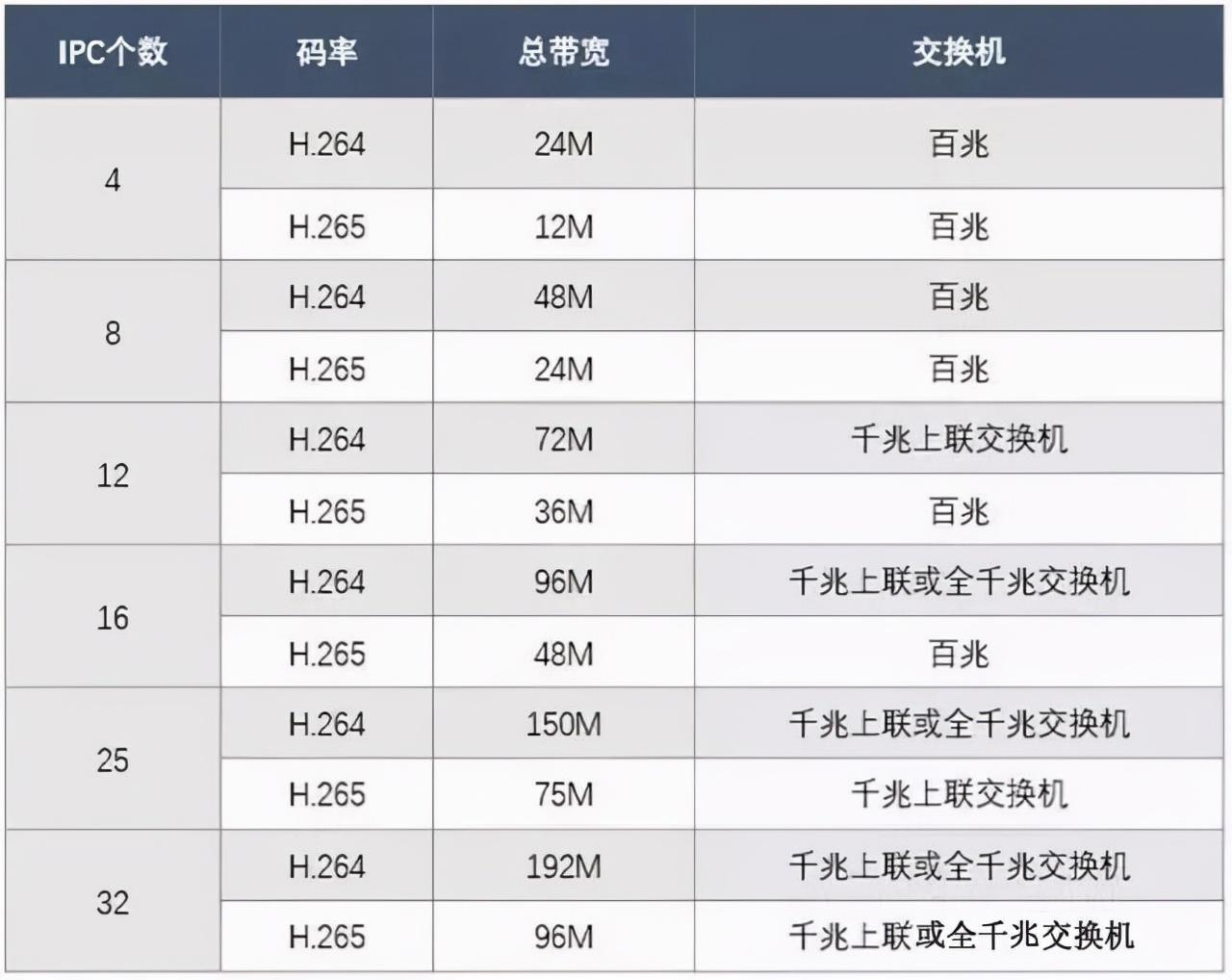 所以,在选择核心交换机的时候,根据IPC数量,建议如下: