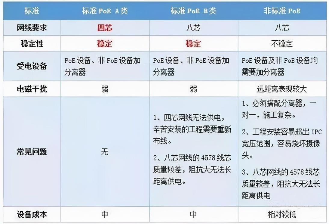 选择的时候,可以结合各类PoE的优势和成本考虑进行选择: