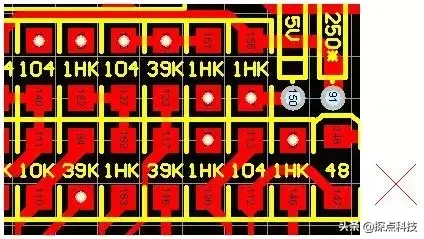 15、关于大器件下面的小器件: 有的人喜欢将小的器件排在同一层的大器件底下,比如:数码管底下有电阻,如下图: