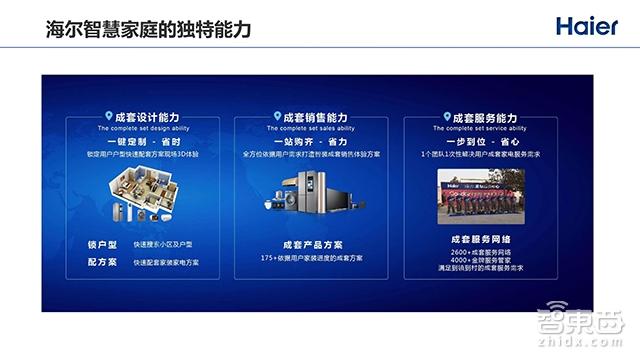 除了这个之外,销售也很重要。当决定要买了,用户希望整套解决方案也能够出货。这点考虑的是一站购齐省力,不需要跑很多家就能够把所有东西搞定,所以这里面的成套销售能力体验,就是海尔以家电为核心的同时,能够结合第三方的硬件,整合在一起,给用户一站式服务。
