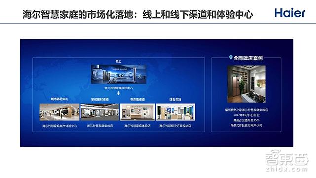 同时还有城市体验中心、家居建材渠道、专卖店渠道和综合卖场,这些都会从以前的传统家电专卖店变成智慧家庭的体验中心、智慧家庭集成店和智慧家庭的体验店。实际上,智慧家庭的落地不只是产品做出来,而是要让用户体验得到、装得上、用得好,并且服务好。比如,福州居然之家海尔智慧家庭集成店于2017年10月1号开业,在开业之后得到的反馈很好。目前整个智慧家庭的高端比例提升到了35%,同时整个场景式的体验也是比较能得到用户认可的。