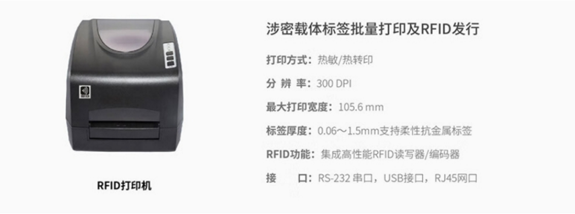 基于RFID技术的涉密载体管控系统所利用的RFID相关的专用设备有:桌面式发卡器、RFID标签打印机、RFID手持终端、RFID通道门禁、智能管控柜、专用电子标签等硬件设备,一起实现涉密载体在日常管理、快速盘点、区域监控、出入报警、智能存取、轨迹监控等功能。