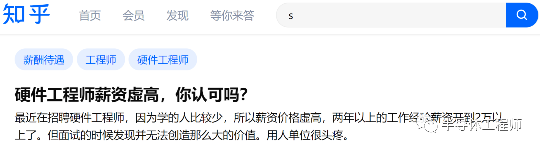 最近在知乎上看到一个热议话题:硬件工程师薪资虚高,你认可吗? 该作者表示,最近在招聘硬件工程师,因为学的人比较少,所以薪资价格虚高,两年以上的工作经验薪资开到2万以上了。但面试的时候发现并无法创造那么大的价值,用人单位很头疼。