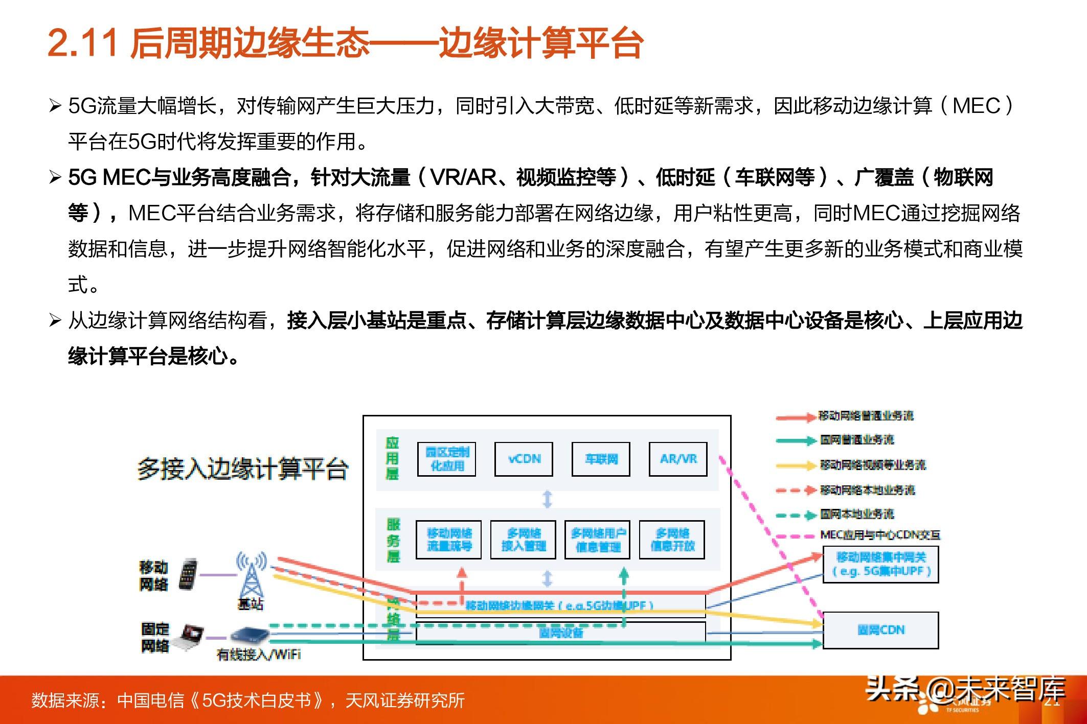 5G网络时代,终端的丰富性预计将会强很多(从5G手机到VR/AR设备到可穿戴设备 到无人驾驶汽车等但爆款仍不知),内容和应用目前雏形:VR/AR游戏/云计算/人 工智能/无人驾驶/工业互联网等等。