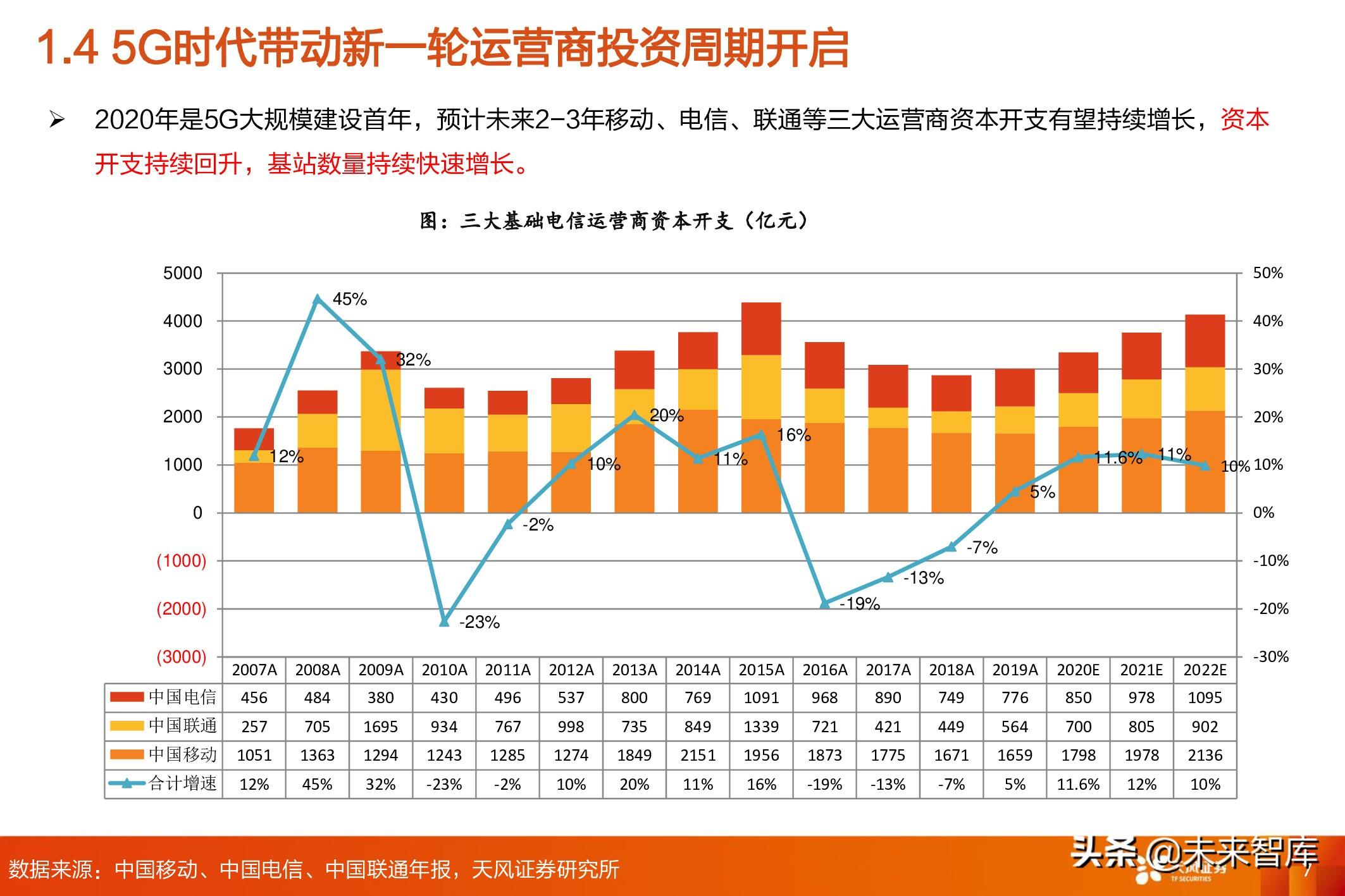 1.4 5G时代带动新一轮运营商投资周期开启