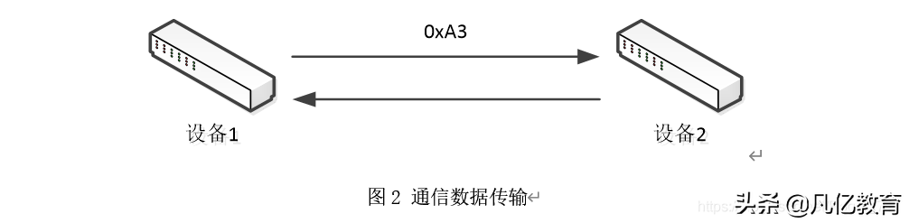 利用设备1向设备2传输0xA3(1010 0011)这样一组数据,从硬件层面将1010 0011这组数据定义为1为高电平,0为低电平,我们就可以通过改变传输线电平的高低实现这组数据的顺利传输。