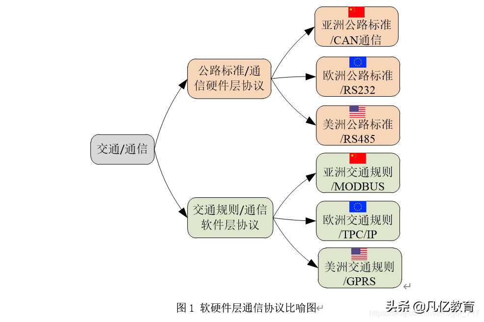 为了更加形象的理解软硬件层面的通信协议,我们将通信比作交通 ,通信的硬件层协议比作各国的公路标准,各国的公路标准类似于不同的硬件层协议标准;通信的软件层协议比作各国的交通规则,各国的交通规则类似于不同的软件层协议标准。