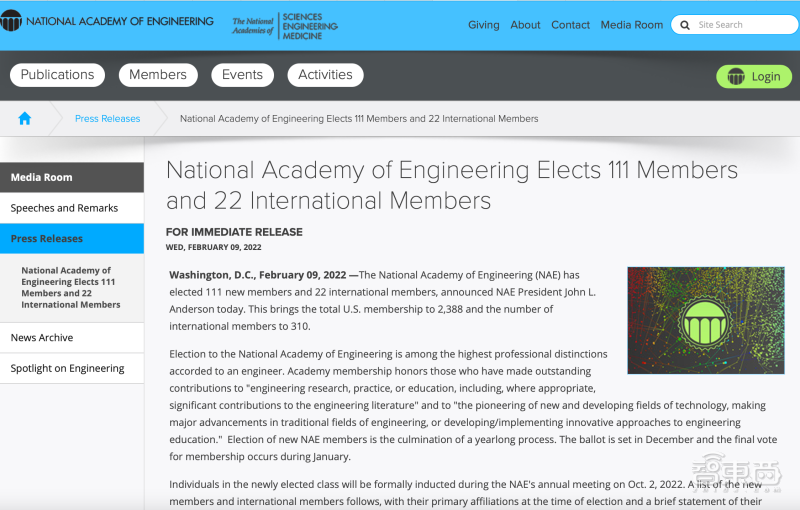 智东西2月10日消息,当地时间2022年2月9日,美国国家工程院宣布了2022年新晋当选的111名院士及22名海外院士名单。