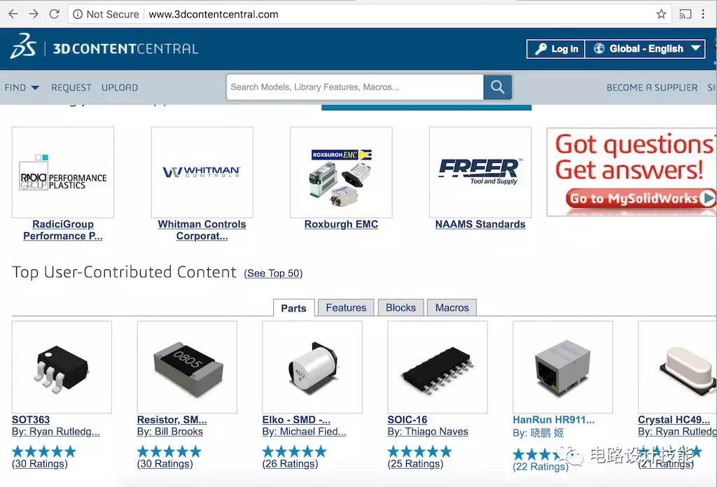 第一次听说这个网站,是我们成都电子科技大学的一位网友推荐的,既然高校的同学都知道这个网站,想必有它的特色。上去看了一眼,貌似是由网友上传分享的一个3D模型网站。我向来对网友的分享持谨慎态度,毕竟这是一个关系到你的设计成败的关键部位,你也不知道这个库的构建者水平如何,其作品是否经过了实际产品的验证,文档撰写的是否准确等等。不过,用做参考还是有益的。