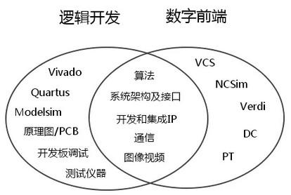 数字前端工程师分为做IP的和做应用的,主要技能是RTL的设计,数字电路的基础以及使用处理器IP和总线的能力。这些同样是逻辑开发工程师具备的技能。FPGA厂商工具中有众多自己的IP,提供应用开发速度。ASIC设计中也会用到众多IP,来缩短产品开发周期。