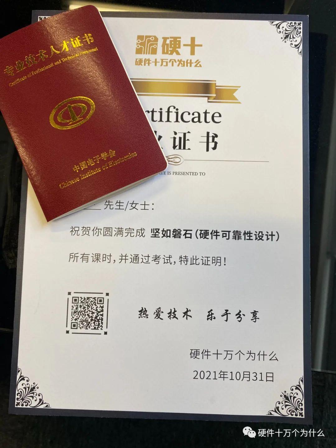 课程购买后支持无限次回放,待课程学完后参加在线考试,成绩合格即可在线申请由中国电子学会颁发的专业技术人才证书及硬十颁发的结业证书。