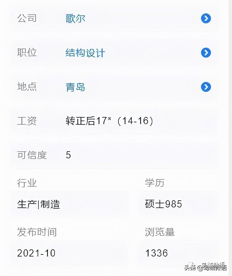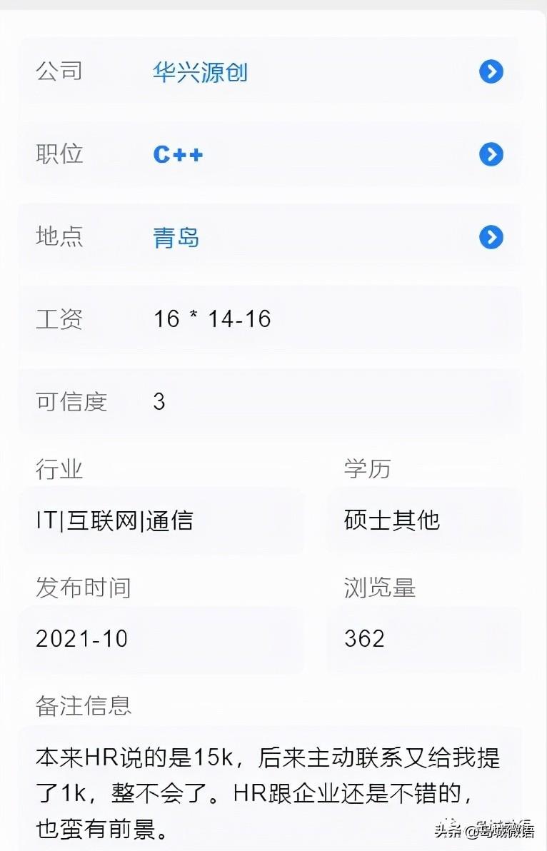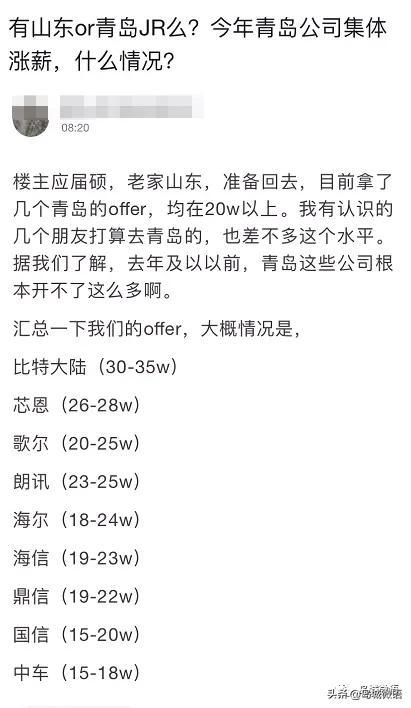 大概是一位刚毕业的硕士求职者在某平台上发布的青岛求职感悟,并列出了青岛此类企业给出的薪资待遇。