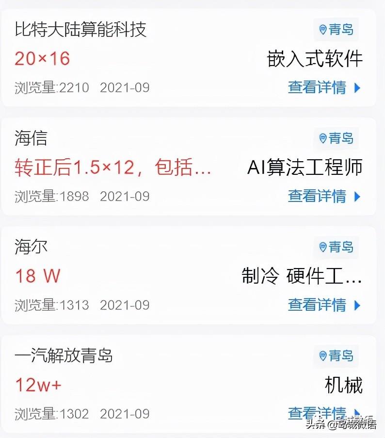 从这些典型头部企业来看,硕士毕业生在青岛就职,在涉及技术研发类方向上,已经纷纷突破20万年薪,offershow的数据相对可观,可见青岛的薪资水平近几年已经有较大的突破!