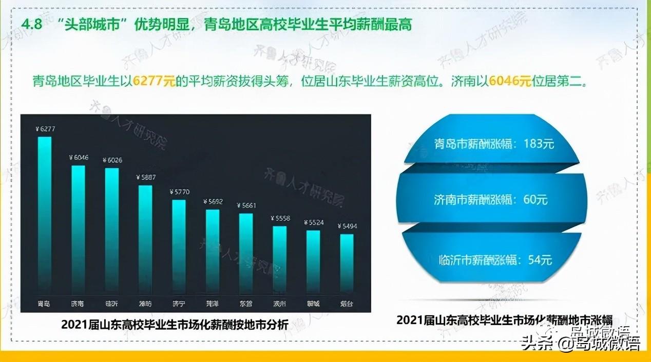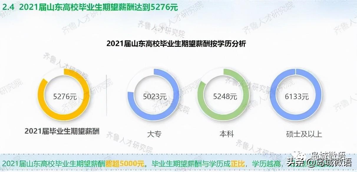 在齐鲁人才网公布的2021年山东毕业生就业报告中,显示全省硕士就业期望高于6000,新兴岗位(芯片、人工智能)就业薪资名下高于传统行业,可达到万元以上。其中,青岛地区毕业生就业平均薪资已经达到了6277元。