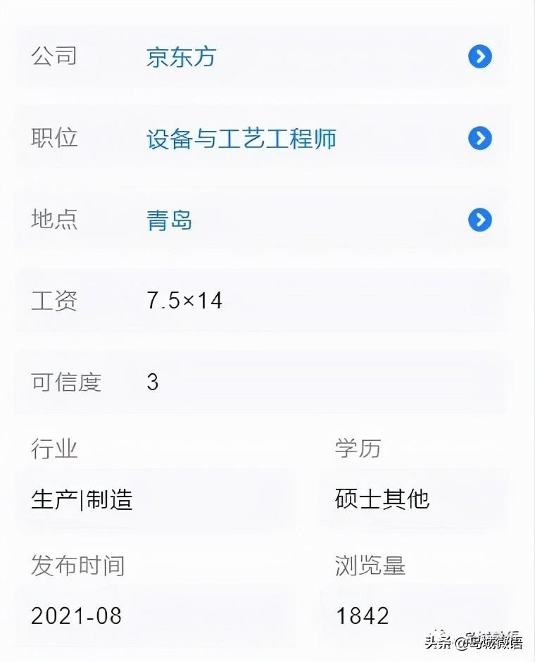 刚落地的移动显示工厂--京东方 在青岛的设备工艺工程师 ,也已经达到了7.5k*14薪 。