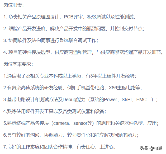 三面,英文自我介绍(没准备,血崩),看我口语不怎样,就让我用中文说了。介绍了一下项目,差分传输追问得比较深。然后问了我原理图设计要注意什么,我基本拿接口设计那些东西应付过去了。面试官可能连续面了2个人,看上去有点累了,而且我一直强调我是做fpga的,可能岗位也不太匹配,他兴趣不大,然后就草草结束了。