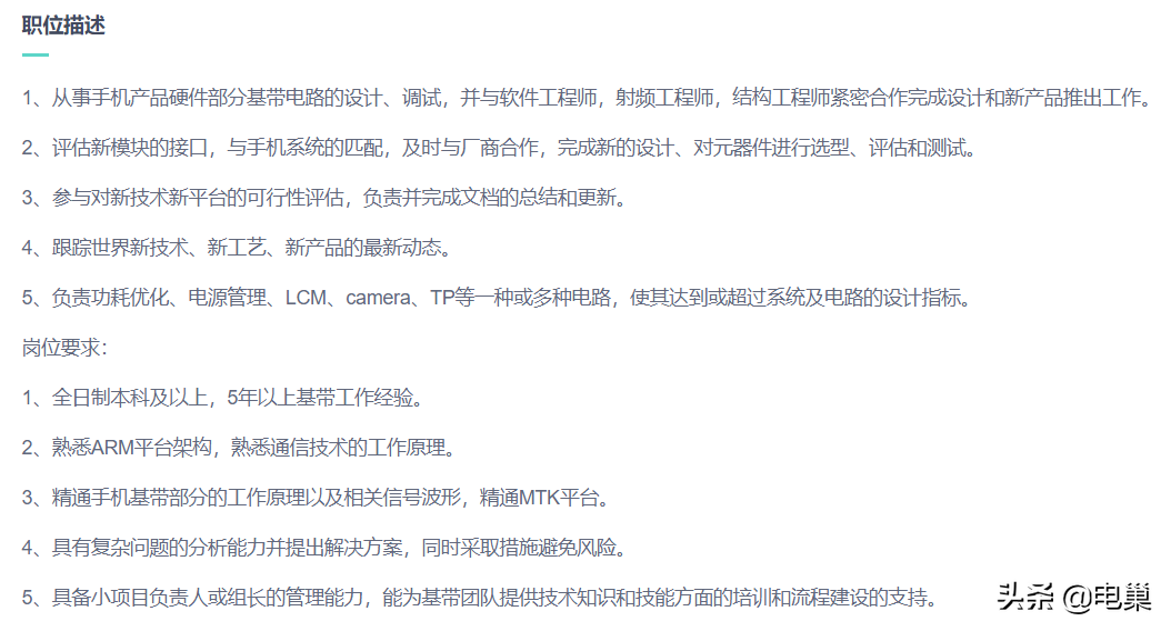 五年以上经验,和大部分基带工程师的招聘要求差不多。