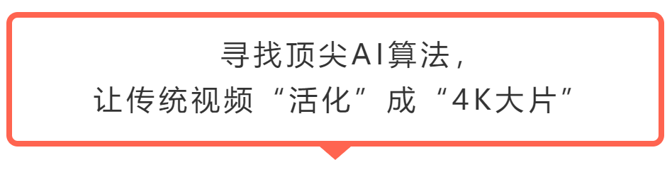 电视产业无疑迎来了巨大变革。目前4K电视在中国电视市场占有量已达到70%以上,终端普及之下,内容缺口成为产业痛点。这一方面国家省市正大力扶持内容制作企业,另一方面,通过人工智能技术,可以将现有视频进行“活化”和提升,转为4K视频,满足产业升级关键诉求。