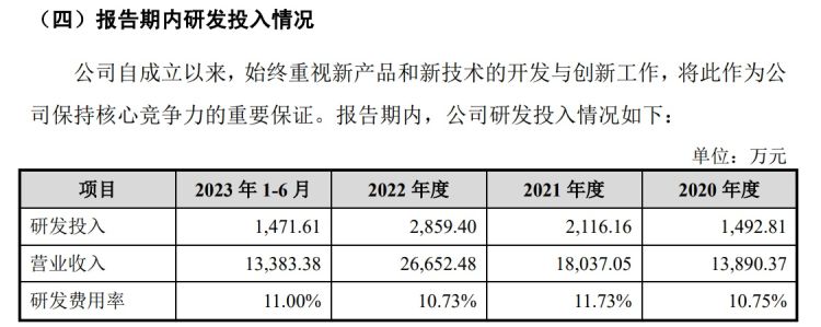 招股书显示,报告期内,公司研发投入持续增长,最近三年复合增长率为38.40%,研发 费用率保持相对稳定, 最近三年累计研发投入金额及占最近三年累计营业收入的比例为 11.04%。