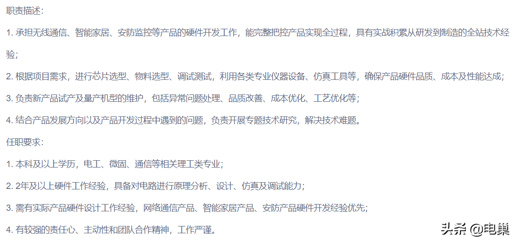 很多互联网公司,如头条、美团、百度、滴滴、网易、新东方等等都在招聘硬件,给的工资也非常香,作者如果在大城市,可能早就去面试了。
