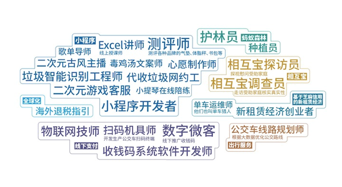 这些新职业,有的因支付宝业务发展而生。如随着支付宝向下沉市场渗透,出现了110万收钱码系统软件开发师,170万向中西部三四线城市小商家推广收钱码的数字微客;随着支付宝出海,出现了海外退税指导师;此外,还有40万人次蚂蚁森林种植员,相互宝调查员等。