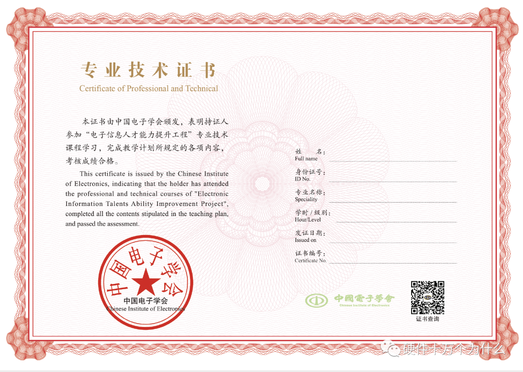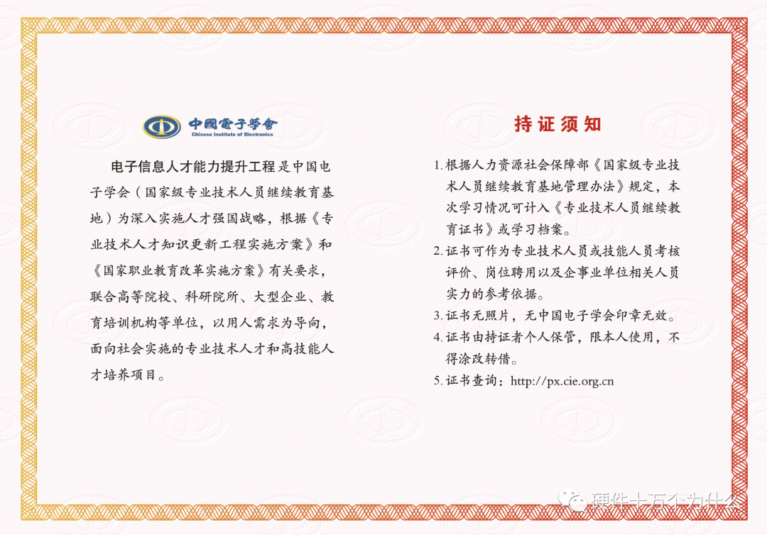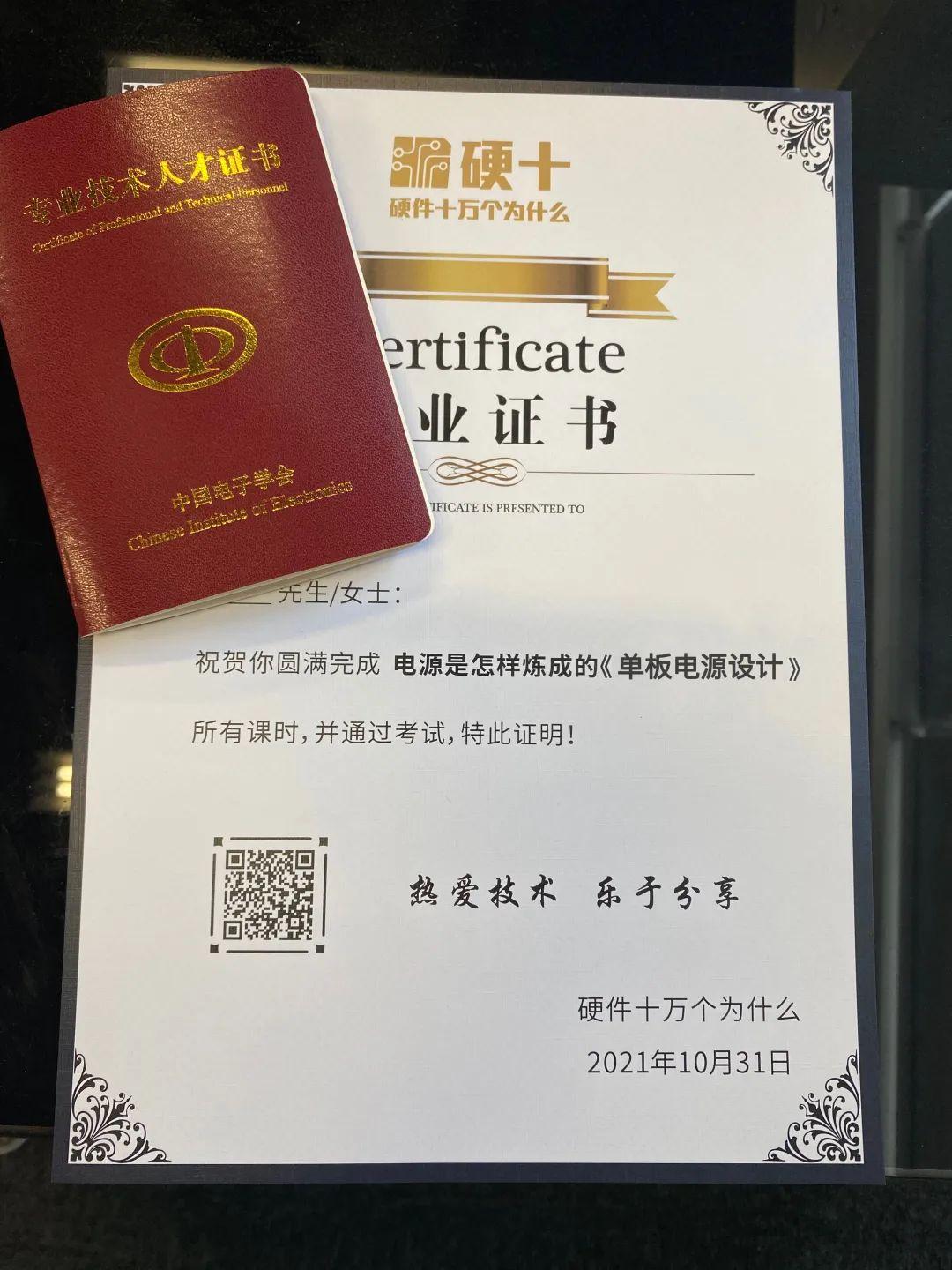 课程购买后支持无限次回放,待课程学完后参加在线考试,成绩合格即可在线申请由中国电子学会颁发的专业技术人才证书及硬十颁发的结业证书。