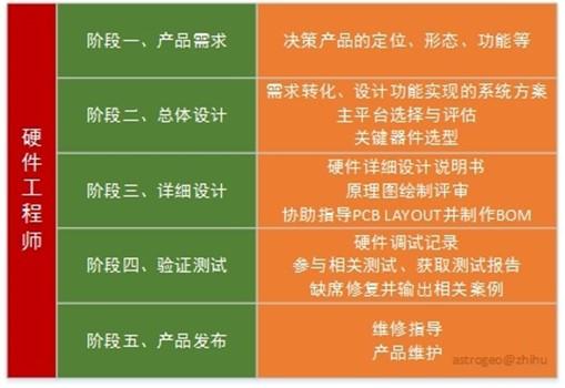 硬件工程师负责整个产品的硬件设计。这里好久之前在知乎上看到一篇专门讲解硬件工程师的文章,觉得讲的很好,在这里贴出来