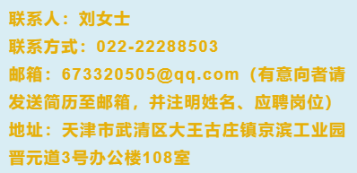 待遇:以上岗位工资面议,双休,提供法定假日、不定期员工活动、旅游、培训等一系列福利,缴纳五险。