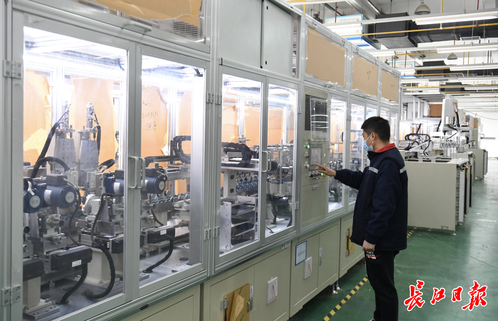 武汉逸飞激光股份有限公司技术人员在操作自主研发的全极耳电池生产线。 长江日报记者高勇 摄